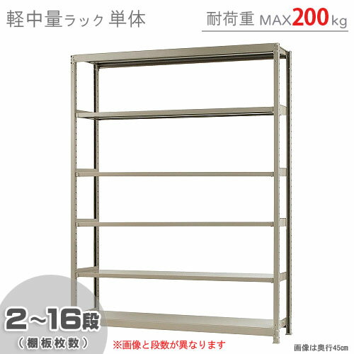 【個人宅も送料無料】 軽中量ラック200kg 単体 幅180×奥行60×高さ240cm 2〜16段 アイボリー 200kg/段 【スチールラック★楽天最安値に挑戦!】 【スチール棚 スチールラック 業務用 収納棚 収納ラック】 【商品key:[W180][D60][H240]】