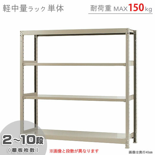【個人宅も送料無料】 軽中量ラック150kg 単体 幅150×奥行45×高さ180cm 2〜12段 アイボリー 150kg/段 【スチールラック★楽天最安値に挑戦!】 【スチール棚 スチールラック 業務用 収納棚 収納ラック】 【商品key:[W150][D45][H180]】