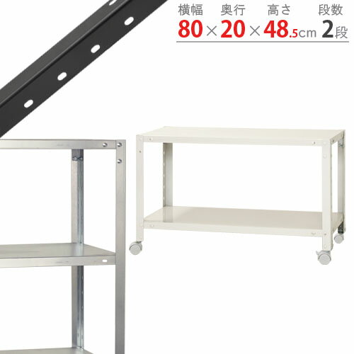 スチールラック スマートラック NSTRK-053幅80×奥行20×高さ48.5cm 2段ホワイト ブラック 亜鉛メッキ 80kg/全スチール棚 スチールラック キャスター付き 収納棚 収納ラック スリム キッチン シェルフ リビング オフィス 防災収納 商品key:[W80][D20][H45]