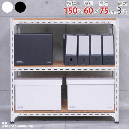 スチールラック アングル棚幅150×奥行60×高さ75cm 3段ホワイト ブラック 70kg/段スチール棚 スチールラック 業務用 収納棚 収納ラック キッチン シェルフ リビング DIY ガレージ 防災収納 倉庫 カラーアングル 店舗什器 商品key:[W150][D60][H75]