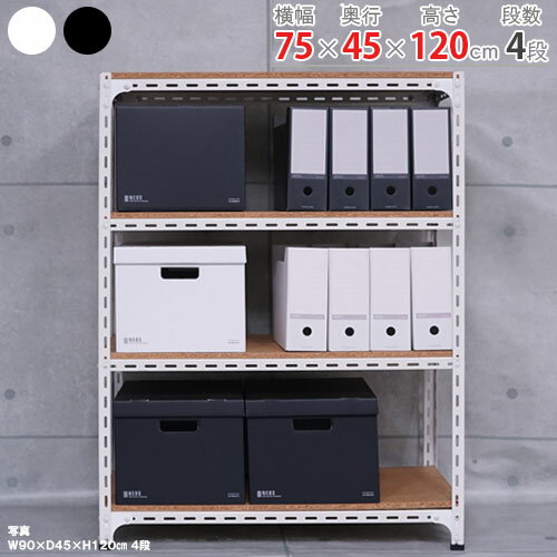 スチールラック アングル棚幅75×奥行45×高さ120cm 4段ホワイト ブラック 70kg/段スチール棚 スチールラック 業務用 収納棚 収納ラック キッチン シェルフ リビング DIY ガレージ 防災収納 倉庫 カラーアングル 店舗什器 商品key:[W75][D45][H120]