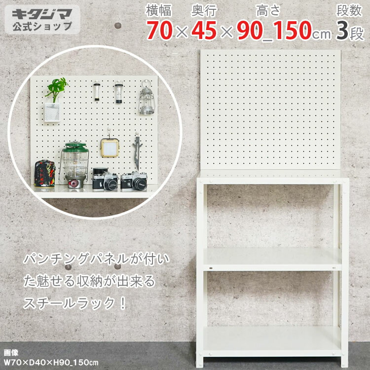 【個人宅も送料無料】 NSTR-P-3547 幅70×奥行45×高さ90_150cm 3段 ホワイト 40kg/段 【ディスプレイラック 化粧台 魅せる収納 有孔ボード パンチング 工具ラック スチール棚 スチールラック 業務用 収納ラック】 【商品key:[W70][D45][H150]】