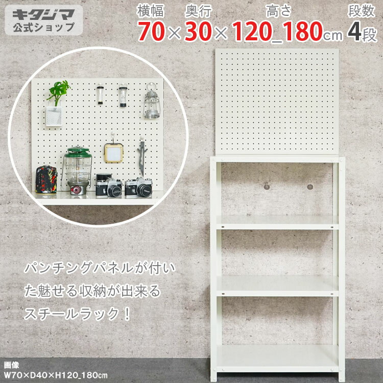 【個人宅も送料無料】 NSTR-P-4644 幅70×奥行30×高さ120_180cm 4段 ホワイト 40kg/段 【ディスプレイラック 化粧台 魅せる収納 有孔ボード パンチング 工具ラック スチール棚 スチールラック 業務用 収納ラック】 【商品key:[W70][D30][H180]】