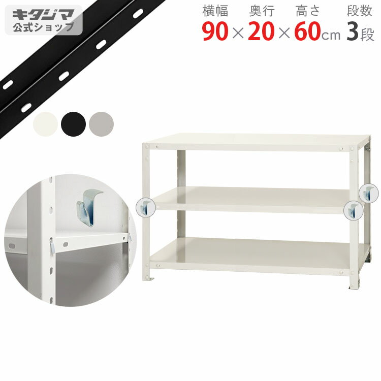 【個人宅も送料無料】 スマートラック BC-NSTR-163 幅90×奥行20×高さ60cm 3段 ホワイト・ブラック・亜鉛メッキ 40kg/段 【スチールラック最安値挑戦】 【スチール棚 スチールラック 業務用 スリム 収納ラック】 【商品key:[W90][D20][H60]】