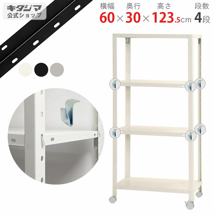 【個人宅も送料無料】 スマートラック BC-NSTR-K-434 幅60×奥行30×高さ123.5cm 4段 ホワイト・ブラック・亜鉛メッキ 80kg/全 【最安値挑戦】 【スチール棚 スチールラック 収納ラック キャスター付き】 【商品key:[W60][D30][H120]】