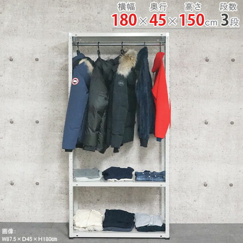 【個人宅も送料無料】 ハンガーラック HR-KT-4-15 幅180×奥行45×高さ150cm 3段 ホワイトグレー 150kg/段 【スチールラック楽天最安値に挑戦!】 【スチール棚 スチールラック 業務用 収納棚 収納ラック】 【商品key:[W180][D45][H150]】