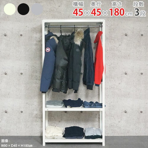 【個人宅も送料無料】 ハンガーラック スマートラック HR-NSTR-627 幅45×奥行45×高さ180cm 3段 ホワイト・ブラック・亜鉛メッキ 40kg/段 【スチール棚 スチールラック 業務用 収納棚 収納ラック】 【商品key:[W45][D45][H180]】