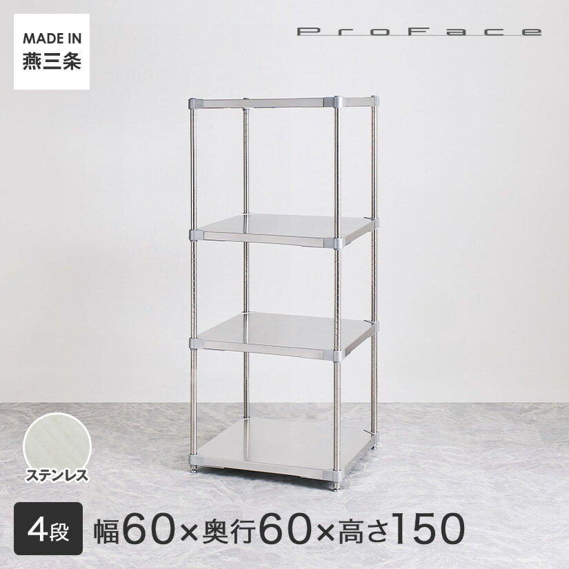 PROFACE プロフェイス SUS304ステンレス ステンレスラック 衛生 病院 研究所 施設 フリーラック 幅60 奥行60 高さ150 4段 (幅61.5×奥行61.5×高さ150cm) GSS4-6060