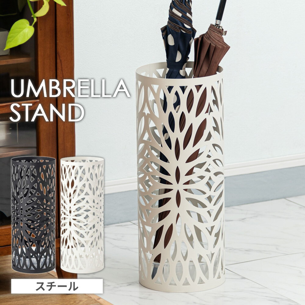 傘立て アンブレラスタンド ラウンドシェイプ ブラック /ホワイト | アンブレラ 傘入れ 傘 かさ カサタテ シンプル スチール製 鉄 カッティング 丸 花 スリム おしゃれ 玄関 玄関収納 レイングッズ
