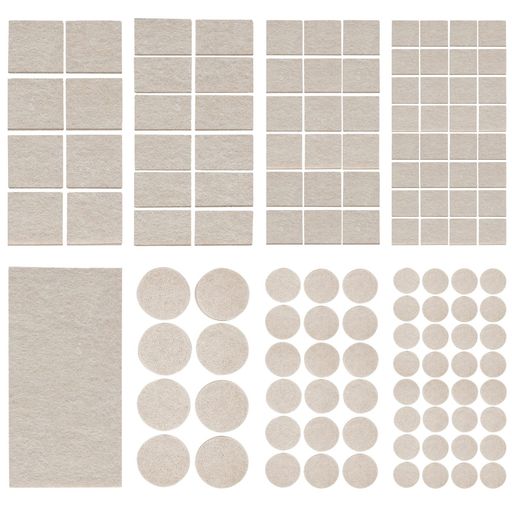 【安心な3Mテープ採用&高密度繊維素材】高密度繊維での家具保護パッドが強度な3M接着剤を付きます。保護パッドが強度な接着剤があり、操作も簡単で、ただ白い紙を剥がし、イス、家具、小物などに貼るだけ!※固定位置に30秒くらい押して貼り付けてください。また、良質なポリエステルを採用しており、耐摩耗性に優れ、長期使用でも大丈夫です。 【引っかき傷や騒音を減らす&移動しやすい】摩擦やノイズを減少可能!フェルトは厚さ約5mmで、このフェルトパッドを家具でつければ、床が傷つかずにキズ・ニック・へこみから保護できます。移動する際の騒音にも有効的に防ぎます。&キズ防止パッドを使って摩擦や騒音を下げられるし、ベッドやソファなどの大型家具に貼れば、ベッド・ソファ・テーブルなどの重い家具が簡単に移動してなり、母親は掃除が楽になりますよ~ 【嬉しい大容量&自由にカット可能】このセットには合計129個家具保護パッドが含まれます。