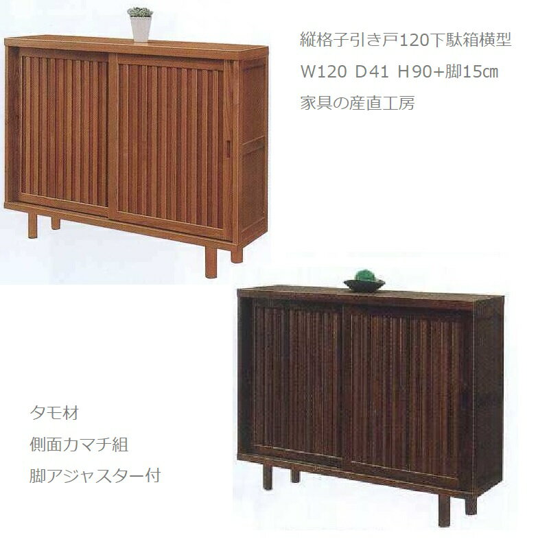 野星 120幅 下駄箱 タモ材 縦格子デザイン 引き戸タイプ スライド 横型 框作り 産地直送価格 日本製 卸価格 [PR]