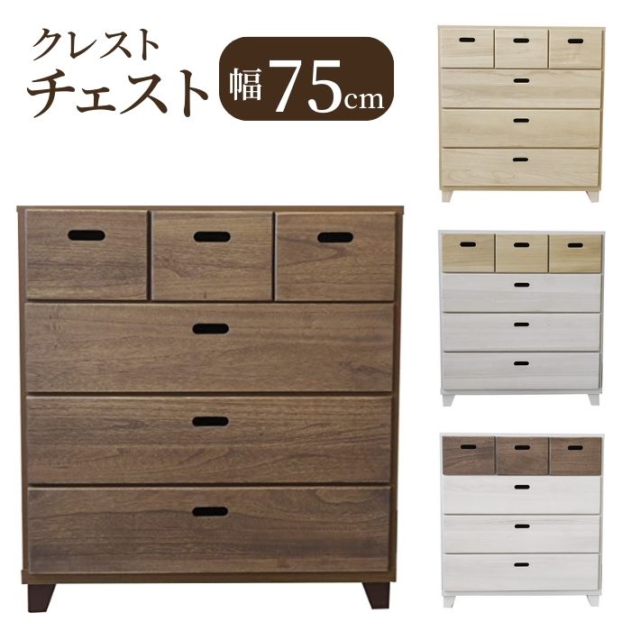 [最大400円OFFクーポン配布中] チェスト ローチェスト クレスト 幅75cm 高さ81cm 日本製 大川家具 国産 収納 桐 脚付き 引き出し 4段 タンス 衣類収納 洋服タンス 整理タンス リビング収納 寝室 北欧 おしゃれ モダン 中村敬木工 ブラウン ナチュラル ホワイト/ブラウン