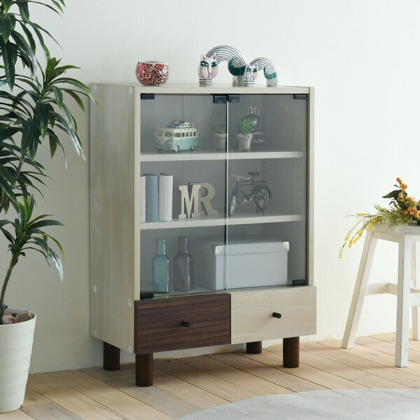 木目のあるナチュラル×ダークブラウンのツートーンで、ちょっぴりレトロな大人可愛いガラス扉×チェスト。 ガラス扉にはお気に入りの小物や雑誌などを並べれば「見せる収納」として楽しめます。 中は可動棚なので収納物に合わせて高さを調節できます。 こまごましたものは引き出しの中に入れて見た目スッキリ!サイズ(約):幅60×奥行32.5(取っ手除く/30)×高さ85cm材質:プリント紙化粧繊維板 ガラス/5mm厚強化ガラス可動棚×2枚引き出し左右入れ替え可能お客様組立商品シリーズラインナップはこちら商品の画像は、実物の色に近づけるようしておりますが、お客様のモニター設定、部屋の照明等により色味が異なる場合があります。入荷予定日:約1週間支払方法:銀行振込 クレジットカード日時指定:時間指定可シリーズラインナップはこちら