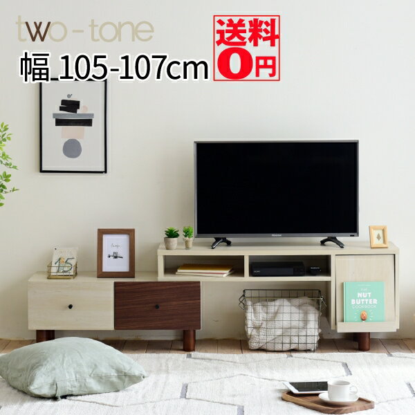テレビ台 ローボード 伸縮スライド 収納棚 フラップ扉 43型対応 Two-tone おしゃれ ナチュラル レトロ