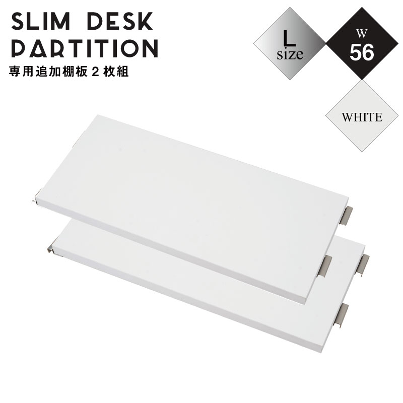 突っ張り薄型スリムデスク専用 棚板 幅56cm(大)2枚組 ホワイト色【NSA-NJ-0341】
