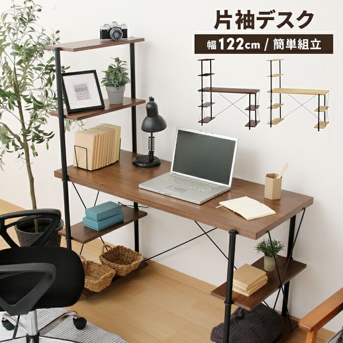 【ポイント5倍 11/21 10:00-12/05 09:59】ラック付き パソコンデスク幅122 奥行56.5 簡単組立 片袖机 ワークデスク 学習机 木目 ネジ不使用 シンプル ナチュラル