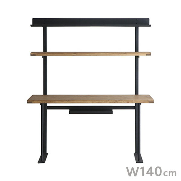 デスク 140 ヴィンテージ風 机 棚付き テレワーク パソコンデスク 在宅 リモートワーク 学習机 木製 北欧風 コンパクト 収納 無垢 アンティーク調 PCデスク 勉強机 シンプル レトロ モダン インテリア かわいい おしゃれ gkw