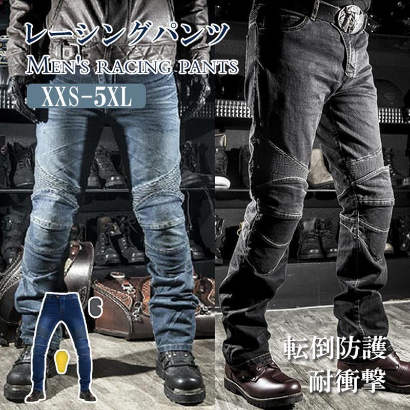 バイクパンツ ライダーパンツ プロテクター付き ジーンズ デニム バイクウェア オートバイ 転倒防護 膝当て 耐久 耐衝撃 膝パッド メンズ レーシングパンツ