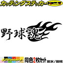野球魂 (2枚1セット) カッティングステッカー 全12色 車 バイク かっこいい 文字 ファイヤー おもしろ ユニーク スーツケース タンク ウィンドウ カウル ヘルメット 野球 ユニーク おもしろ 自動車 転写 シール 防水 耐水 アウトドア