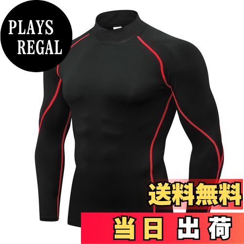 【送料無料】[LANBAOSI] スポーツ アンダーシャツ メンズ コンプレッションウェア トップス ハイネック Uネック サイクルジャージ 長袖 トレーニングウェア インナーシャツ 吸汗速乾 アウトドア作業着 野球 バイク ゴルフ ランニング 色:494#ブラック/レッド、サイズ:2XL