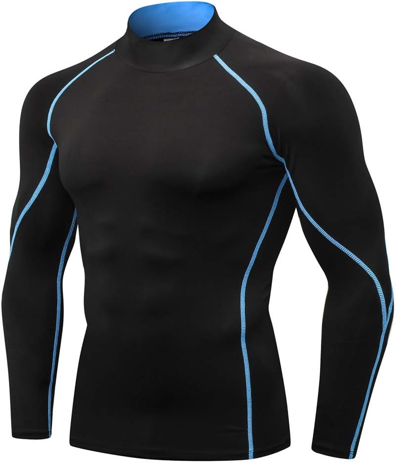 【送料無料】[LANBAOSI] スポーツ アンダーシャツ メンズ コンプレッションウェア トップス ハイネック Uネック サイクルジャージ 長袖 トレーニングウェア インナーシャツ 吸汗速乾 アウトドア作業着 野球 バイク ゴルフ ランニング 色:494#ブラック/グレー、サイズ:L