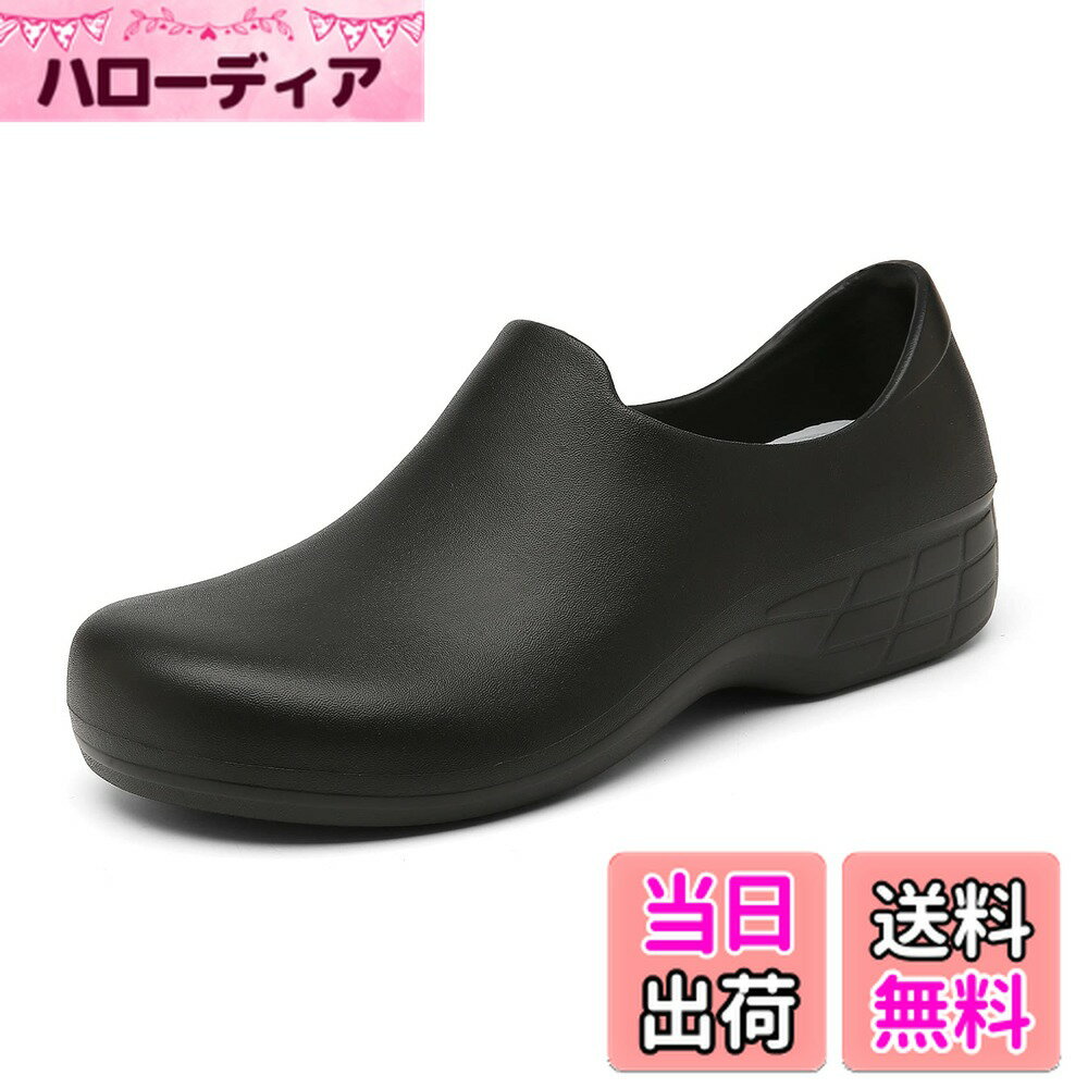 【送料無料】[JSWEI] 厨房シューズ メンズ 滑らない スリッポン 安全 滑り止め靴 こっくしゅーず キッチンシューズ 超軽量 快適 疲れにくい ブラック 色:ブラック、サイズ:29.5 cm W