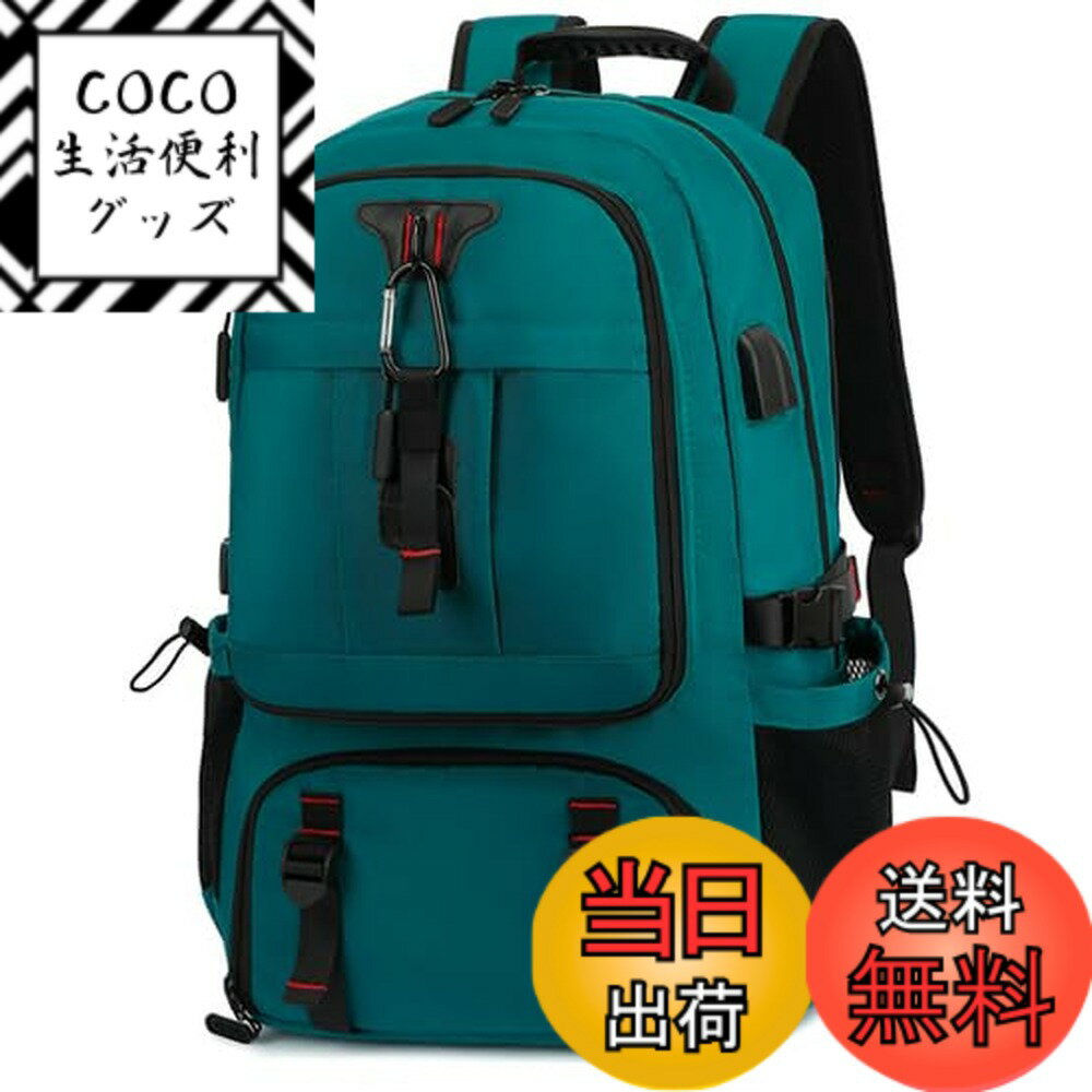【送料無料】[GOZIGENITEMS] リュック 大容量 ビジネス 防災バッグ 【65Lx多収納xシューズ収納x17インチPC対応xUSB給電口】 旅行・出張・部活・登山・アウトドアで活躍 【頑丈な生地x耐水x耐傷】 色:ピーコックブルー、サイズ:59cmx38cmx22cm(拡張後30cm)