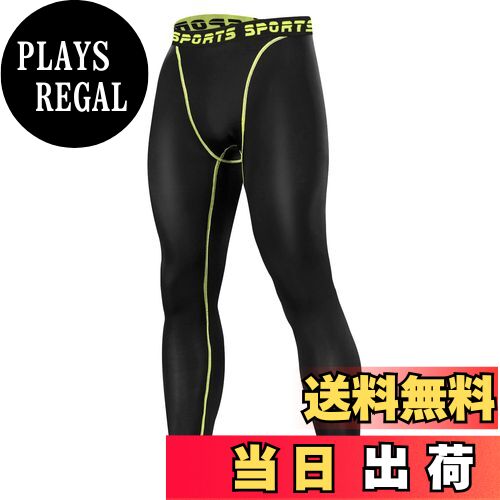 【送料無料】[THREEGUN] スポーツタイツ メンズ コンプレッション タイツ 着圧レギンス スパッツ ランニングウェア ランニングタイツ 冷感 通気 吸湿 速乾 色:ブラック/グリーン、サイズ:XL