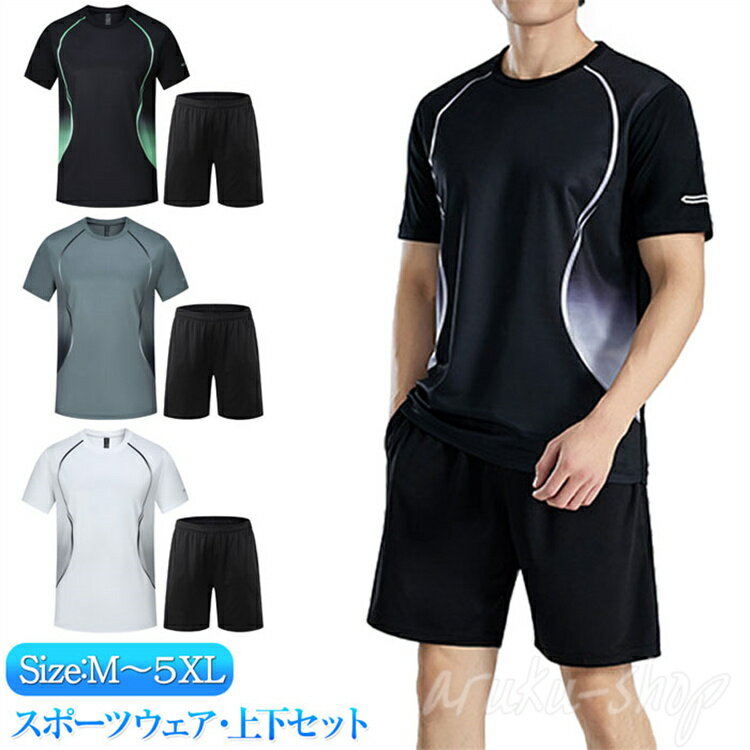 スポーツウェア メンズ 上下セット 半袖tシャツ ショートパンツ ランニングウェア トレーニングウェア カジュアル 薄手 夏服