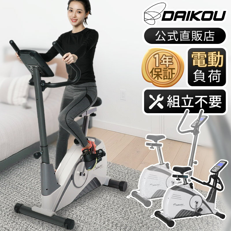 フィットネスバイク 家庭用 組立不要モデル 連続使用 60分 身長 150cmから 静音 エアロ マグネット式負荷 電動16段階調整 アップライトバイク 立ち漕ぎ ダイエット器具 美脚 ながらトレーニング 有酸素運動 ダイコー DK-8702P