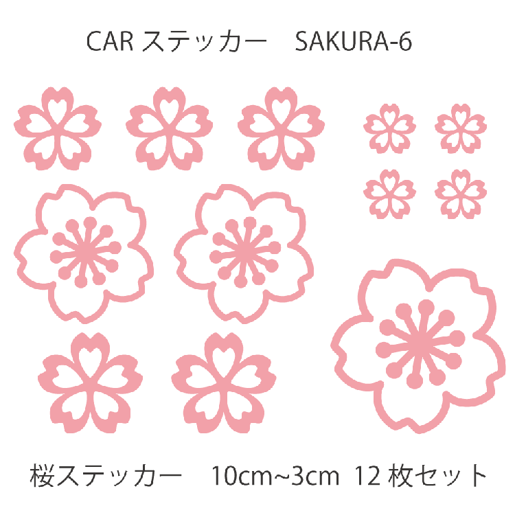 カーステッカー 桜 さくら 花びら サクラ-6 12枚セット 車ステッカー CAR 車 カー ウインドー 窓 ボディ 車体 ステッカー シール カッティングシート デザイン工房 オリジナルグッズ