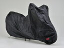【サイズ】 M 【カラー】 ブラック ブラックカバーシンプルの機能性を向上。 ブラックに加え、シルバー、デジタルカモフラージュを追加しました。 ●生地:ポリエステル ・後縛りひも:後部から裾を絞ることで、裾のめくれを防止します。 ・溶けない耐熱パッド:耐熱性コットンパッド付属。マフラーなど高温部に貼り付けることで、バイクカバーが溶けることを防ぎます。 ・風飛び防止センターベルト:車体横で固定できるので、地面に膝をついてベルトを装着する必要がありません。 ・大型ロック対応:前後に大型ロックに対応したチェーンホール(幅85mm)装備。カバーをめくってロックする必要がありません。 ・エアベント機構:左右ミラー部のエアベント機構が、湿気を排出します。 ・前後判別:チェーンホールのフロント側を赤、リア側を黒に分けて前後の判別ができます。 注意事項 ※生地表面にはっ水性のコーティングを施してありますが、完全防水ではありません。雨量・使用状況によっては浸み込む場合があります。また、特性上経年劣化によって防水性が著しく落ちます。あらかじめご了承ください。 ※耐熱パッドを貼り付けた部分でも、高速走行・高回転を多用するハードな走行直後は、マフラーが300℃以上の高温となり、表面まで熱が伝わる恐れがありますので、少し冷ましてからカバーを掛けてください。