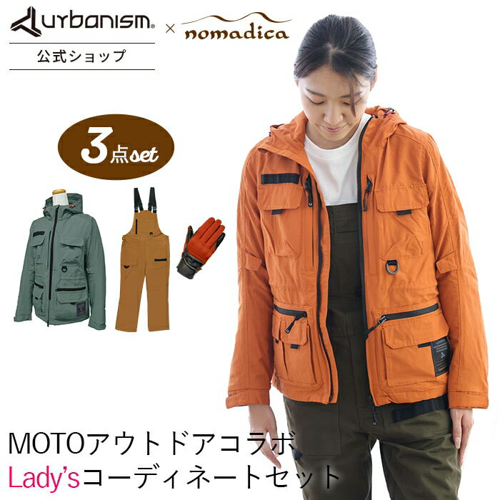 3連休P5倍\3000円クーポン配布/[数量限定]☆20%OFF☆人気 限定HAPPYセット♪【メーカー直販】 nomadica×アーバニズム WOMEN 3点セット 【通年】 バイクウェア レディースアーバニズム バイクジャケット ライディングパンツ ライディンググローブ バイク オートバイ