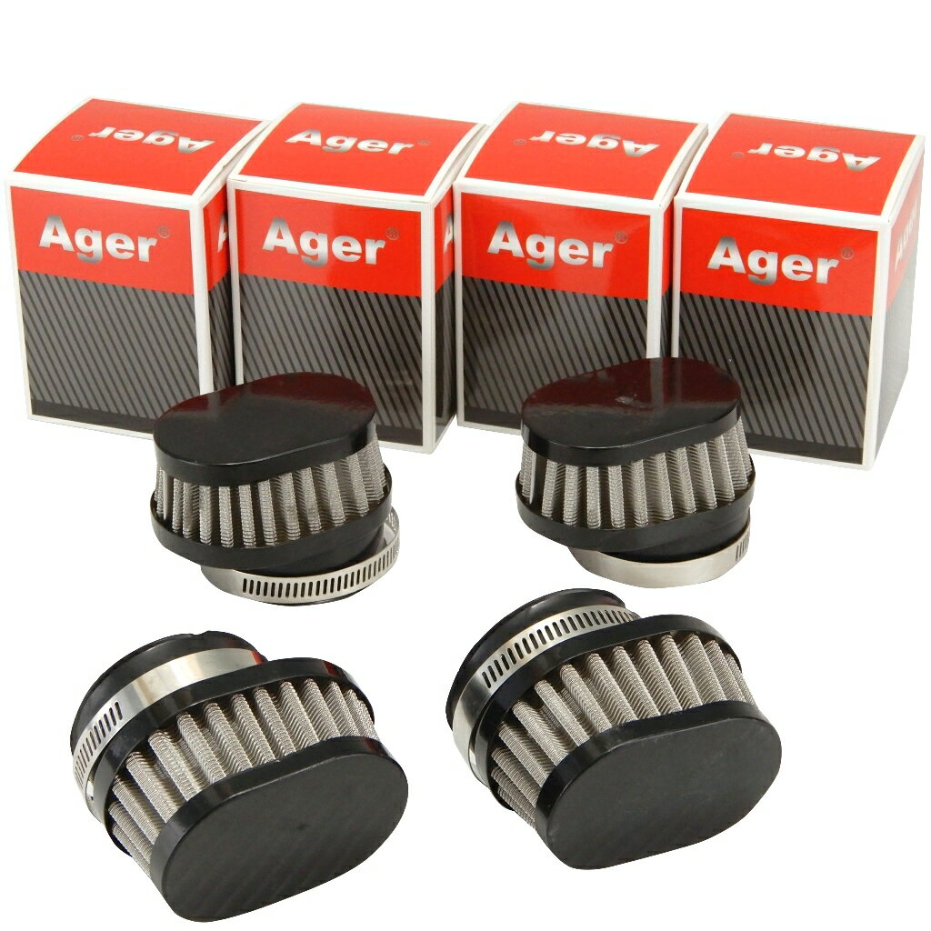 Ager パワーフィルター オーバル 54mm ショート ステンレスxブラック 4個セット ゼファー1100 GPZ750F ZRX1200 ZRX1100 Z1000R Z750FX-3 CB750F CB900F CB1100F XJR1200 XJR1300 GSX1100S GSX エアフィルター 交換 部品 バイク カスタム 汎用 旧車 修理 パーツ