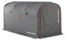 ■商品概要カラー:カラー:グレー・オレンジ原産国:中国サイズ:W160×L(D)337×H170cm製品総重量(付属品含む):20.5kgパイプ径:20mm【材質】・生地:ポリエステル・フレーム:スチール組立て推奨人数:2人以上お客様組立目安時間:60分お客様に別途ご用意いただく必要がある工具:ゴムハンマー(組立て用)■詳細説明普通のサイズじゃ物足りない。趣味も嗜好もすべて収める、ビッグサイズの俺専用ガレージハウス。車体全長の長い大型バイクを収納できるビッグサイズの簡易ガレージ。特別な工具を必要としないカンタン組立はそのままに、さらにユーザビリティを向上した簡易ガレージハウスです。【大型バイクも収納できるビッグサイズ】ストレージバイクガレージXLの全長は337cm。車体全長が長く、これまでの簡易ガレージでは収納できなかった大型バイクも容易に収納することが可能です。空間が広くなることにより、バイクの収納に限らず、バイクガレージ内でのメンテナンスやメンテナンス用品の保管も可能になります。■クルーザーでも余裕で収まるロングサイズ車体全長の長い大型バイクを収めることが可能になる全長337cm。これまで収めることに不安を感じていたバイクをスッキリと収めてしまえます。■メンテナンスも可能な広々空間XLサイズは保管だけではなく、メンテナンスにも十分な広々とした空間を作り出します。ガレージ内部には、ライトを取り付けるためのフックを2箇所に設けることで、夜間の作業も可能としました。【入り口をフルオープンできるスクリーングロメット】バイクガレージは設置する場所によっては湿度が大きく変化し、結露などが発生する場合があります。ストレージバイクガレージXLはガレージ内の換気効率を最大化するため、入り口部分にテントポールに対応するΦ1.2cmグロメットを追加しました。換気効率の改善に限らず、キャノピーのように広げることで入口部分にちょっとした屋根を作ることもでき、前後フルオープンも可能です。※本製品にテントポール、ストームロープは付属していません。【バイクガレージ用 吊り下げ収納袋】吊り下げ収納袋は任意のパイプに吊り下げることができます。収納袋の前面がメッシュ地になっており、ガレージ庫内でも中身の確認がしやすいように配慮してあります。※PAT.P【より使いやすいバイクガレージを目指した追加仕様】ストレージバイクガレージXLは、日常的に使用されること、そして長期の保管に使用されることも想定した仕様を加えました。長期に渡って使用してもらうため、より使いやすいバイクガレージを目指した製品です。■入り口を巻き取りやすくするPEボード入り口下部にPEボードを追加。ロール巻き上げを行う際の支持部となり、よりスムーズに巻き上げることができます。■地面との固定力を強化するストームロープ用ループ設置場所によっては風の影響を受けやすいストレージバイクガレージ。本体サイドに設置したストームロープ用ループを用いて、より強固に地面と固定することができます。※ストームロープは付属していません。■内側からの開閉を可能にするダブルサイドファスナー前後入り口を開閉するファスナーは内側からも操作できるダブルサイドファスナーを採用しました。設置場所により奥側の入り口と壁との距離が近くても換気のために内側から開閉することが可能になりました。【ガレージ用途に配慮した機能をプラス】収納するだけじゃない、メンテナンスなど趣味のスペースを充実させるファンクションを追加した+α機能デザイン。■ケーブルホールコンプレッサーや電灯、サーキュレーターなどの庫内への電源供給に対応。■ベンチレーション高低差をつけてベンチレーター(換気口)を設置。本体側の面ファスナーが長めになっているので、フラップを中央寄りに浮かせることも可能。雨の日でも下向きの開口を確保できます。■ランタンフックランタンや電灯が引っ掛けられるフックを設置。夜間ガレージ内での愛車の整備に便利です。【難燃性基準「CPAI-84」クリア】ガレージカバーはアメリカの難燃性基準「CPAI-84」をクリアする難燃性素材を採用。生地に火がついても自己消化し、燃え広がりを防止します。【各部の特徴】■強固な素材強固で防水性にも優れたポリエステル素材を採用しています。■裏面PU加工カバーの裏面にはPUコーティングを施すことで防水性・耐水圧を高めています。※完全防水ではありません■工具不要、かんたん組立工具を使わず、かんたんに設営できます。ポールに記載の番号を参考につなぎ合わせてカバーをかぶせ、固定するだけで設営完了です。■両サイド開閉密閉された内部ではメッシュウィンドウのみでは効率的に空気が循環しない可能性があります。前後開閉により、短時間での換気を可能にしています。■常設用ペグ×4本 付属固定...■注意点※製品等の色は、ご使用になるモニターや、設定によって若干の違いが発生する場合があります。※サイズ