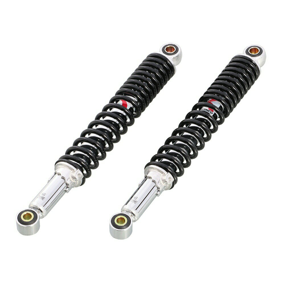 キタコ社オリジナルのリヤショックアブソーバーです。培ってきたミニバイクのノウハウを最大限に引き出して開発されたチューニングパーツです。 ◆適合車種:HONDA リトルカブ ◆適合車種:HONDA スーパーカブ50/70/90 ◆適合車種:HONDA スーパーカブ110(JA07全車種) ◆2本1SET ◆自由長330mm ◆プリロード調整機能:5段階 ◆オイルダンパー式 ◆二人乗り対応(50ccは除く) [参考ノーマルリヤショック自由長(おおよその数値)] ・リトルカブ(C50/AA01):330mm ・スーパーカブ50〜90(C50/AA01/C70/HA02):325mm ・スーパーカブ110(JA07):325mm ※スーパーカブの古いモデルは自由長がノーマルと異なったり、装着できない場合があります。必ずノーマルショックを実測の上、ご購入下さい