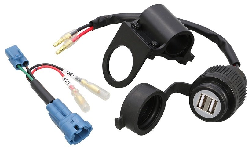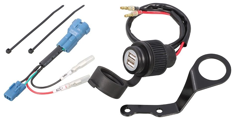 ■商品概要【USBポート】1.000mA×2個【DC5V 最大出力】2.000mA(1ポートのみ使用の場合)【仕様】・カプラーオン・防滴仕様・LED内蔵(ブルー)【付属】・車種専用電源取り出しハーネス(電源取り出し箇所:ヘッドライトケース内)・マークチューブ(キタコオリジナル)・バーハン用USBステー(バーハン装着の際使用)【インターフェイス】USB/1.1×2ポート【入力/出力電圧】DC12V/DC5V:最大2A(1ポート使用時)【ACC+】アクセサリー電源【GND-】アース■詳細説明コネクターを割り込ませるだけで、USB電源の取り出しが可能に!モバイル電源供給に最適な2ポートタイプのUSB電源に専用ハーネスを付属した車種専用タイプです。生活必需品のモバイル携帯等、充電に必要な電源確保に!専用設計なので指定のカプラーに割り込ませたUSB電源キットに繋ぐだけ、設置もメインキー横のアクセサリーソケット用ステーにUSB電源キットを取り付け可能です。・アクセサリー電源(ACC+)を使用しています。キーオン時に通電し、内蔵LED(ブルー)が点灯します。・指定の場所以外にUSB電源をお好みの場所に取り付けられるステーを付属。(Φ22.2、Φ25.4のバーハンドルに取り付け可能)・電源取り出しハーネスtype4ヘッドライトケース内の指定カプラーに割り込ませギボシ端子を繋ぐだけ。■注意点※国内仕様車のみ適合。※本製品は12V車専用設計となっております。12V車以外の車両には使用しないでください。※完全防水ではありません。洗車・雨天時は使用しないで下さい。また使用しないときは付属のゴムキャップを必ず装着してください。※温度変化等により本体(ゴムキャップ)内部に結露が発生する恐れがあります。温度変化の激しい場所(エンジン周り)は避け、こまめに確認し水滴は除去してください。(エアダスター、掃除機等で水滴を除去して下さい。)トラブルの原因になる可能性があります。※消費電力、電流の高い製品(アンプ、コンプレッサー等)の接続には使用しないでください。※メーカー都合により商品の仕様変更がある場合がございます。ご了承ください。■適合車種CT125ハンターカブ CT125ハンターカブ 備考: JA55全車種/JA65全車種 ※国内仕様車のみ適合