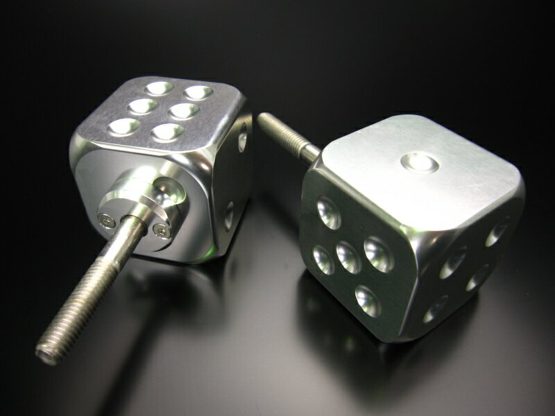 ミニモトオリジナルのTheサイコロハンドルノブアルミ材を削り出し、豪華さと迫力感を出しました。自由に番数部分へペイントを施し、カラーデコレーションを楽しむこともできます。高品質にこだわったミニモト製品です。<仕様>ノブ部分 アルミ材ネジ部分 スチール材ノブサイズ直径 47mm重量 620g・・・2個(左右)<注意>*年式によってはネジ込部分の深さがわずかに異なるため、ガタが発生する場合には、ワッシャー(1m程度)を入れてください。*当製品はモンキーの場合、燃料タンクとノブが干渉しますのでお薦めできません。ダックス、シャリィへ最適な大型ノブです。