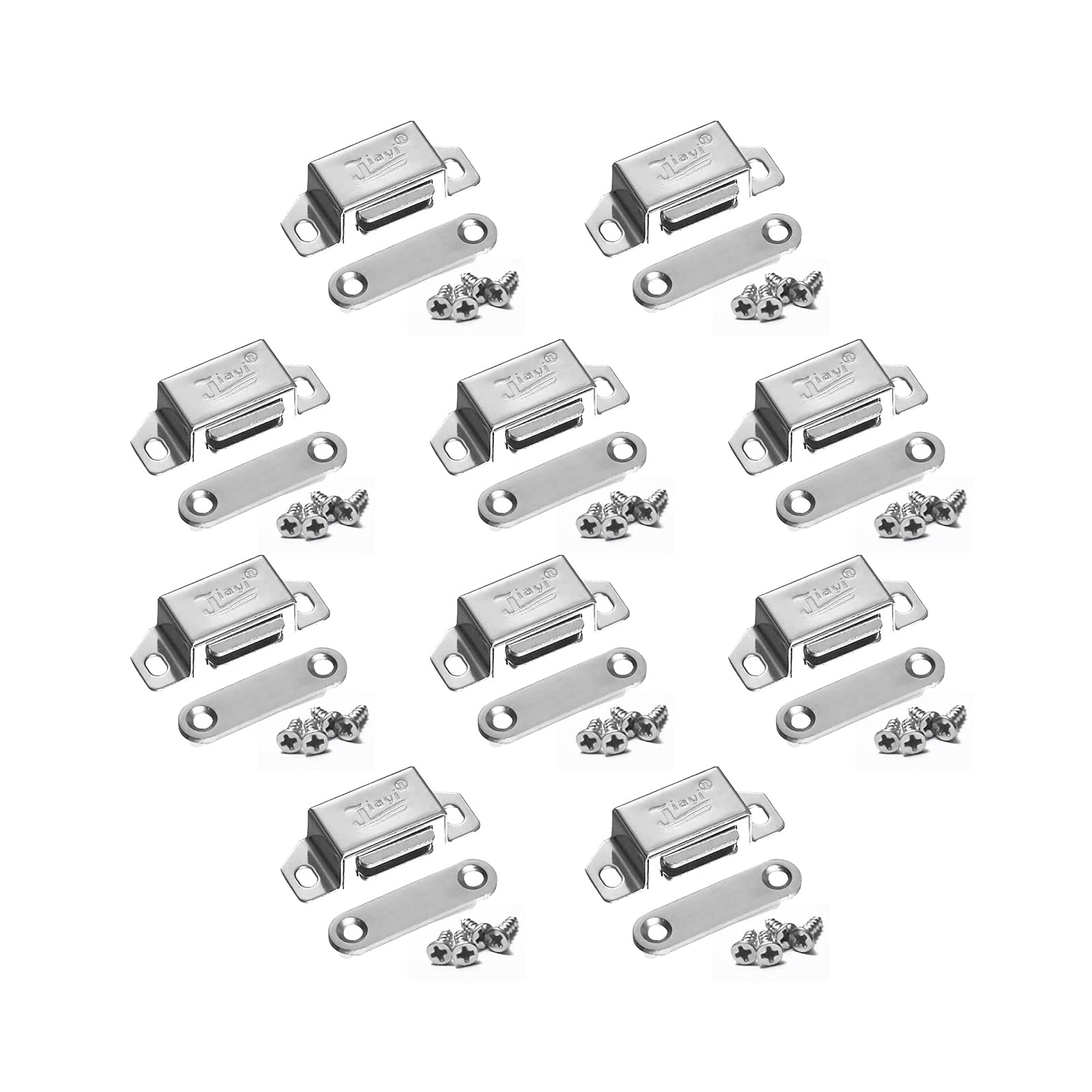 YFFSFDC マグネットキャッチ 強力 小型 磁気キャッチラッチ ネジ付き ステンレス鋼製 磁石 ドア止め金具 引き戸/家具扉/戸棚/食器棚用 磁気ドアキャッチ (シルバー10セット)