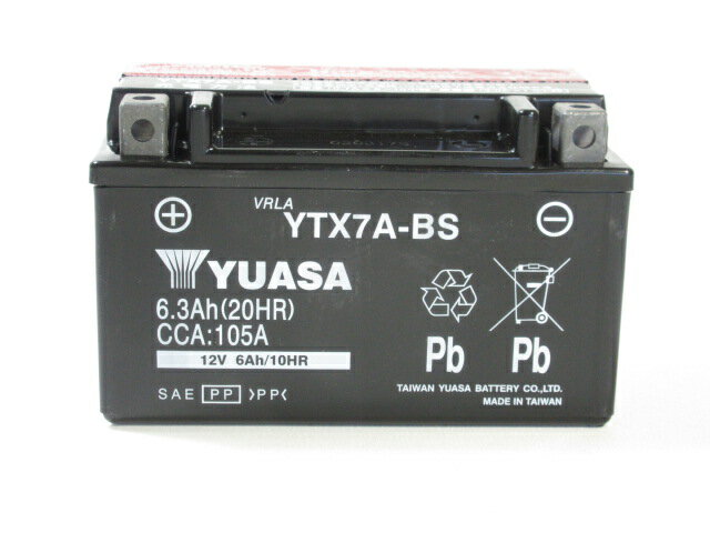 台湾ユアサバッテリー YTX7A-BS 互換バッテリー FTX7A-BS VTX7A-BS GTX7A-BS DTX7A-BS 他 ■商品概要 状態 新品 バッテリー 保証期間 到着30日間 ※詳細は下記をご参照ください ◆バッテリー要項表(サイズ・重量は目安となります) 型番 容量 長さ 幅 高さ YTX7A-BS 6.0Ah 150mm 87mm 93mm ※バイクのバッテリーは車種ごとに専用規格となっております。適合品以外のものはご使用いただけませんので、型番の選定には十分ご注意ください。 ※輸入品のため、使用に支障のない傷、まれにビスの不具合がある場合がございます。予めご了承お願い致します。 ■新品バッテリー取り扱いについて 電解液を注入後→15分〜30分程度放置してからキャップを取り付けてください。 初期充電しなくてもご使用になれますが、充電器をお持ちの方はなるべく初期充電を行ってください。 デジタルテスターをお持ちのお客様は測定してからご使用ください。 ★安心保証のE-PARTSにてご購入下さい! 【保証内容】 到着後30日以内に不備がバッテリー本体に原因がある場合は交換保証させていただきます。 その際かかる送料は次の通りとなります。「7日以内=往復弊社負担、8日以降=往復お客様ご負担」 万一故障が有った場合、必ずTELまたはメールにてご連絡ください。 【保証対象外】 故障の原因が天災及び事故によるもの 本体取扱方法(キャップの取り付けミス等)の誤り、車両側充電系統の不備によるもの 脱着にかかる工賃・車両の修理代等 充電の後、正常に動作するもの ◆車種別のバッテリー適合はこちらからもご確認いただけます。 電解液別バッテリーは毒物劇物取扱法で18才未満の方には販売できません。 商品到着後直ぐに、同封の確認書に「署名、捺印」しポスト投函お願い致します。 切手代はかかりません。◆バッテリー適合表は GSユアサ FBバッテリー ACデルコ でご確認頂けます。 ※年式・国内外の仕様で搭載バッテリーが異なる場合がございますので現車搭載の バッテリーをご確認お願いいたします