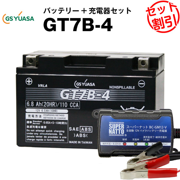 【マラソン限定★エントリーでP10倍】バイクバッテリー充電器+GSユアサGT7B-4 セット 【バイクバッテリー】■■ST7B-4、YT7B-BS、FT7B-4に互換■■ボルティクス・スーパーナット【特別割引】シグナスX,TT250R,YP250,マジェスティ,DR-Z400S