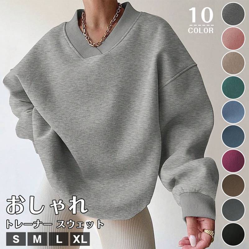 トレーナー スウェット レディース ベーシック 無地 トップス 長袖 シンプル カジュアル おしゃれ ビッグシルエット 可愛い ファッション 体型カバー 秋 春 冬