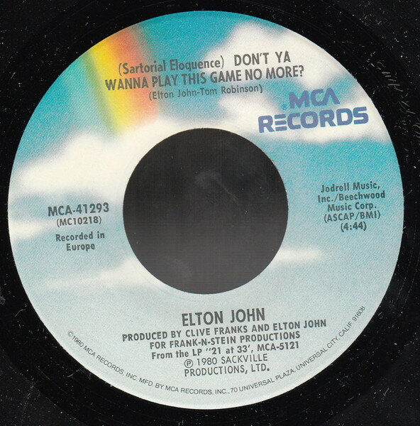 【中古】米7” Elton John (Sartorial Eloquence) Dont Ya Wanna Play This Game MCA41293 MCA Records /00080