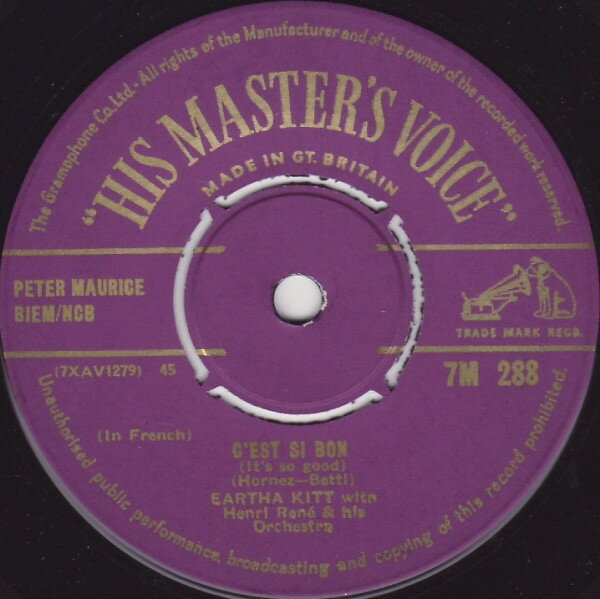 【中古】英7” Eartha Kitt, Henri Rene & His Cest Si Bon / Senor 7M288 His Masters Voice /00080