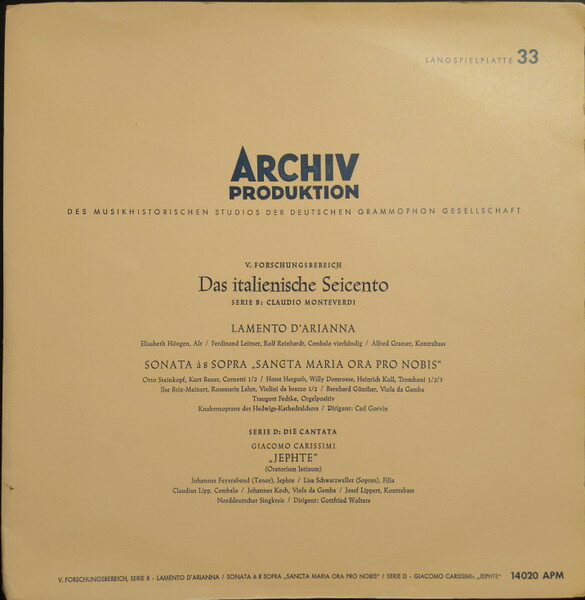 【中古】独LP Claudio Monteverdi / Giacomo C Lamento DArianna / Sonata A 8 Sopra ”Sancta Maria O APM1420 Archiv Produktion /00260