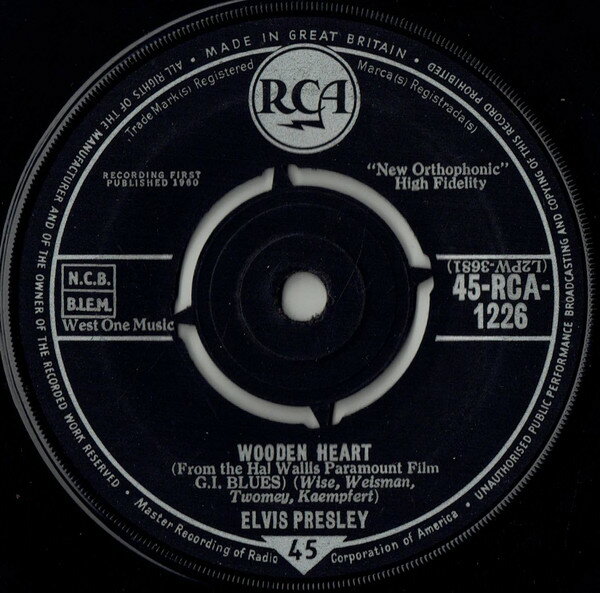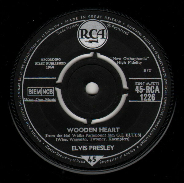 【中古】英7” Elvis Presley Wooden Heart 45RCA1226 RCA /00080