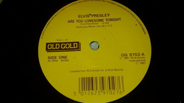 【中古】英7” Elvis Presley Are You Lonesome Tonight / Wooden Heart OG9702 Old Gold /00080
