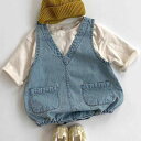 |  ロンパース ベビー 男の子 女の子 韓国風 ソフトデニム カバーオール 春秋 ノースリーブ コットン 柔らか デニム素材 赤ちゃん服 股下スナップ おしゃれ かわいい カジュアル