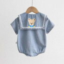 |  ベビー服 男の子 ロンパース デニム 薄手 半袖 夏用 新生児向け カジュアル クマ キャラクター コットン カバーオール かわいい ダークブルー