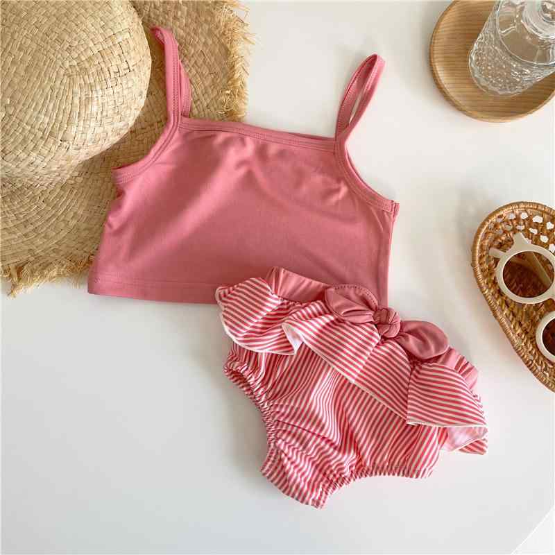 ベビー水着 女の子 女児 幼児 赤ちゃん 0歳 1歳 2歳 キャミソール リボン ストラップ スイムウェア プール ビーチ 海水浴 水遊び 春夏 ピンク かわいい おしゃれ